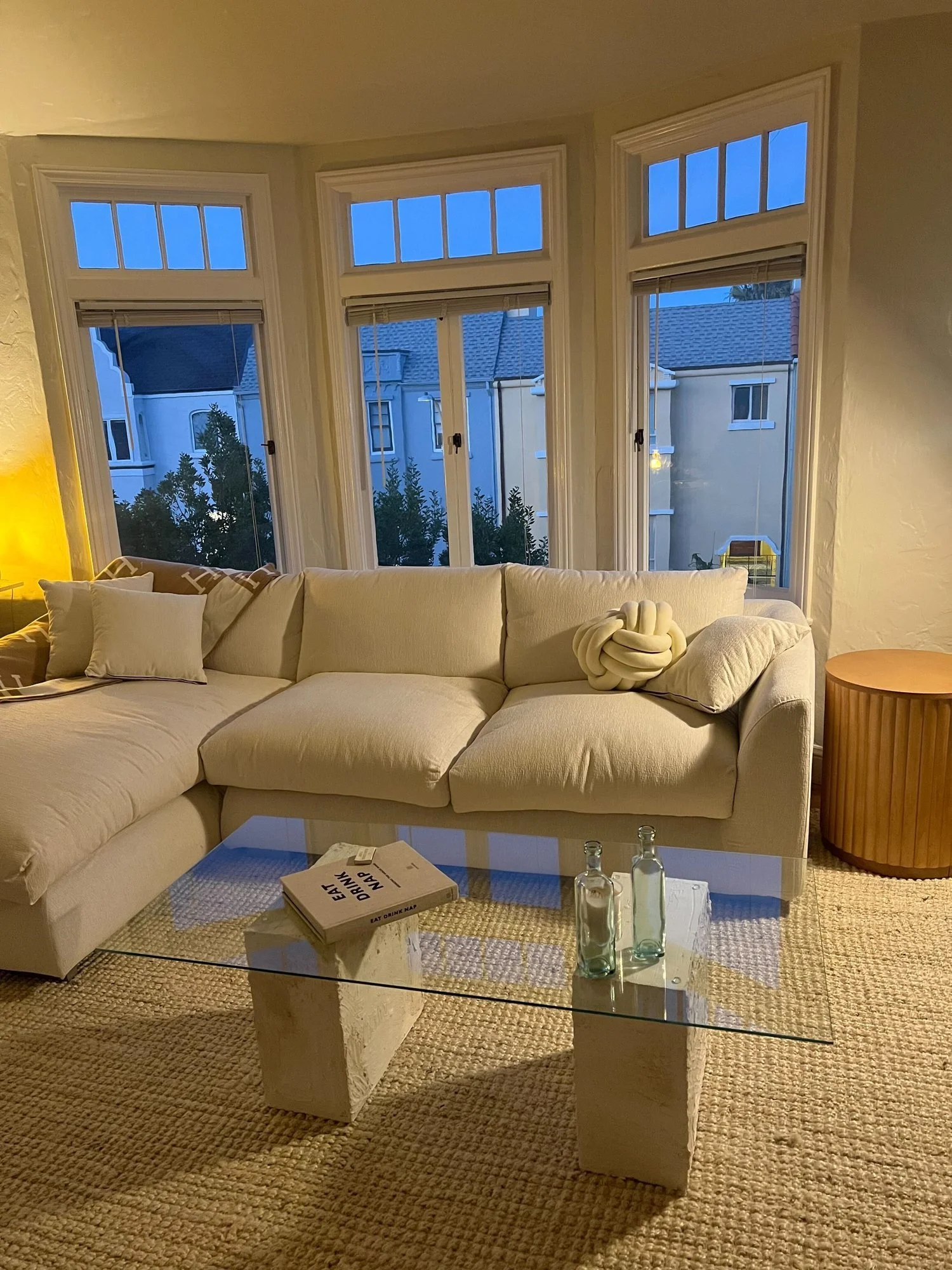 “I DIYed our coffee table, and it was not only easier than I expected but also so much fun. I don’t see myself as handy or crafty whatsoever, so this is a big deal for me! I loved seeing how far focused creative time (plus cinder blocks, concrete tape, plaster of Paris, and a plaster scraping tool) goes.” —Courtney